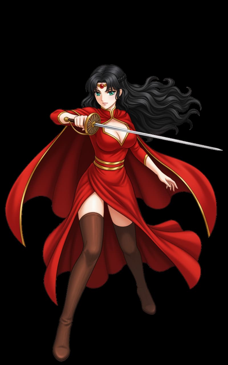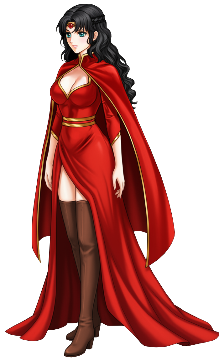 This fullbody image of Selenea was genned with Nano Banana after feeding her existing in-game halfbody into the tool and giving it an appropriate prompt. GIMP was used to recolor her boots from red to brown and make the background transparent. Consider this her official fullbody render for now.