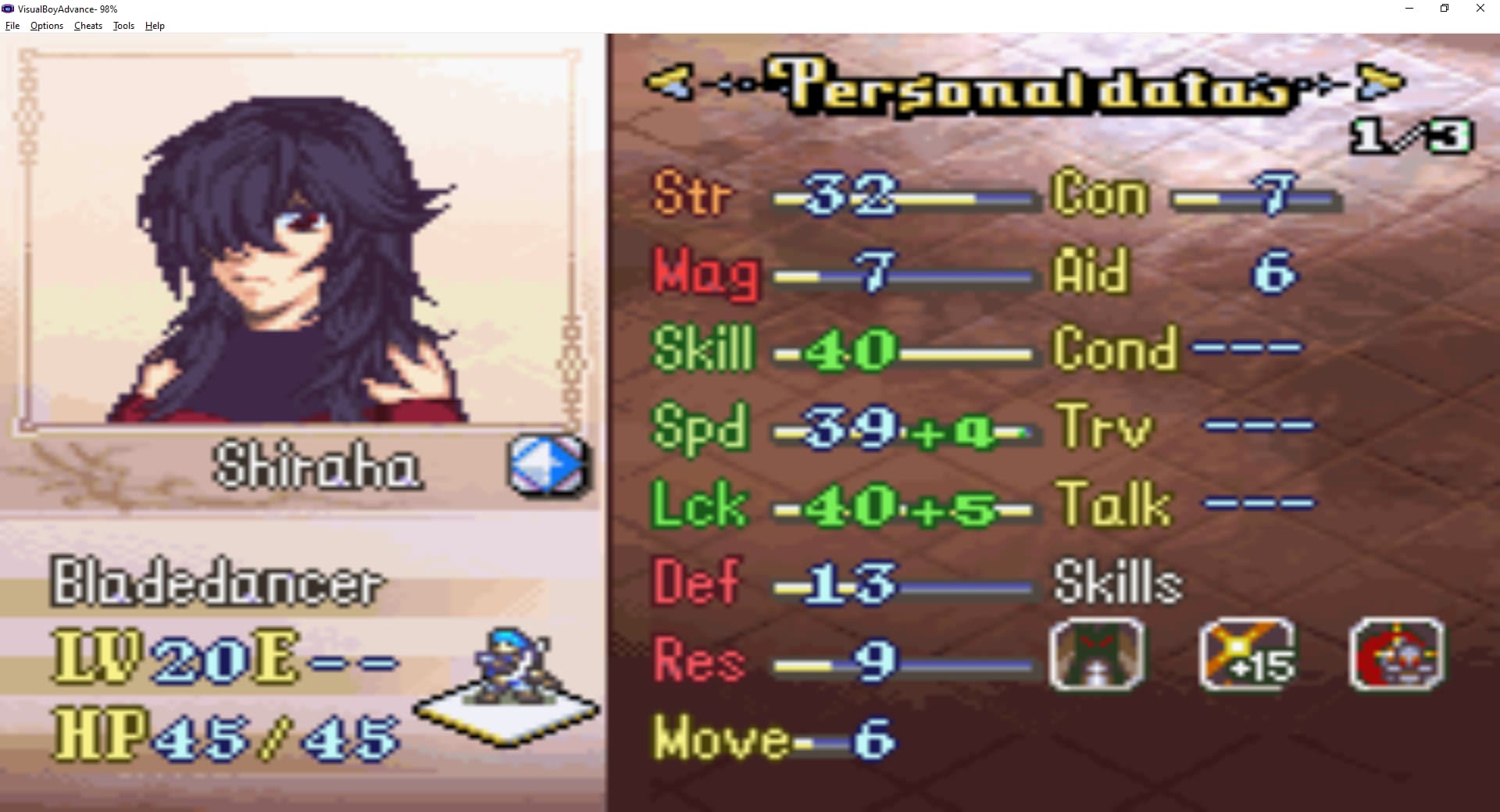 Once this happens, make sure to cast Rally Speed before sending her in; this helps ensures she doubles enemies and also gets her extra avoid. The average enemy hit rate is like 20% displayed; once she gets Killing Machine she will kill them before they get much of a chance to hit her. The only real threats are Wyvern Riders who can reach like 30 STR and potentially OHKO Shiraha; this can be solved by giving her the Dracoshield in this map, which makes it much less likely that a Wyvern with OHKO power will spawn.
