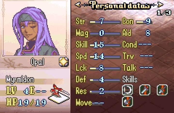 Being able to shove enemies makes it easy to force an Archer in Ch2 onto the Fort, which Shiraha can then grind for EXP using a Slim Sword, getting her to Lv10 trainee easily.