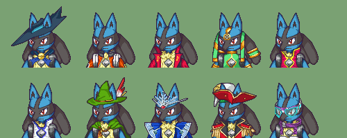 One of, if not, the most popular Pokemon to come from Pokemon’s gen IV, although as you can see, he and his species made their first debut in a movie (and I think even in the very first PMD games too). Surprisingly, there’s not much to be said here considering that I already did his portraits a long time ago. In fact, his revamped portrait is still a edit of his very first portrait instead of a complete redraw, since I still liked his original pose enough to just improve on it. Some of the main changes were giving him a much bigger color palette (since at the beginning I didn’t want to do that but later on I came to change that stance), being a bit brighter too and thus having a more accurate color palette, and being slightly taller. If character portraits were able to be more higher, I would’ve liked it but I’m glad at how he ended up here. Maybe his mouth could need some touch ups, but I wasn’t sure how since I didn’t want to change his head any further. Overall, at least in terms of the main portrait, I love how he looks now, so the most certain thing is that this will be the final touch up of Lucario’s portrait.