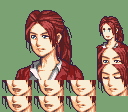 The main protagonist of Haunting Ground. Since the game has a good amount of medieval imagery (Fiona herself states how her outfit looks like one from that time), I guess she could easily fit in a FE romhack, like having her as a villager you have to protect, or could also work as a troubadour. Her hair was a bit elaborate to make, due to being a very pale shade of blonde that couldn’t fit any skin tones, compared to all of the characters I did that have blonde hair, but the saving grace is that her hair isn’t long at all. And despite her outfit looking like a well made medieval dress, it was also easy to do. I did check at putting the choker she has in her official arts instead of the one she had in a reference image I took of a game cutscene, since in-game she can equip chokers that come with different effects, alongside earrings and boots (this one obviously won’t appear here). If I revisit her portrait, maybe her eyes and part of her hair will be improved on, since otherwise this one was easy to make, and also turned to be very color palette friendly (4 hair tones used for the clothes, and 3 blue tones for her eyes and choker jewel).