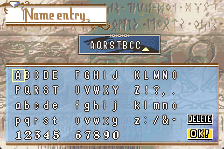 Team Namefrom the name input screen if desired