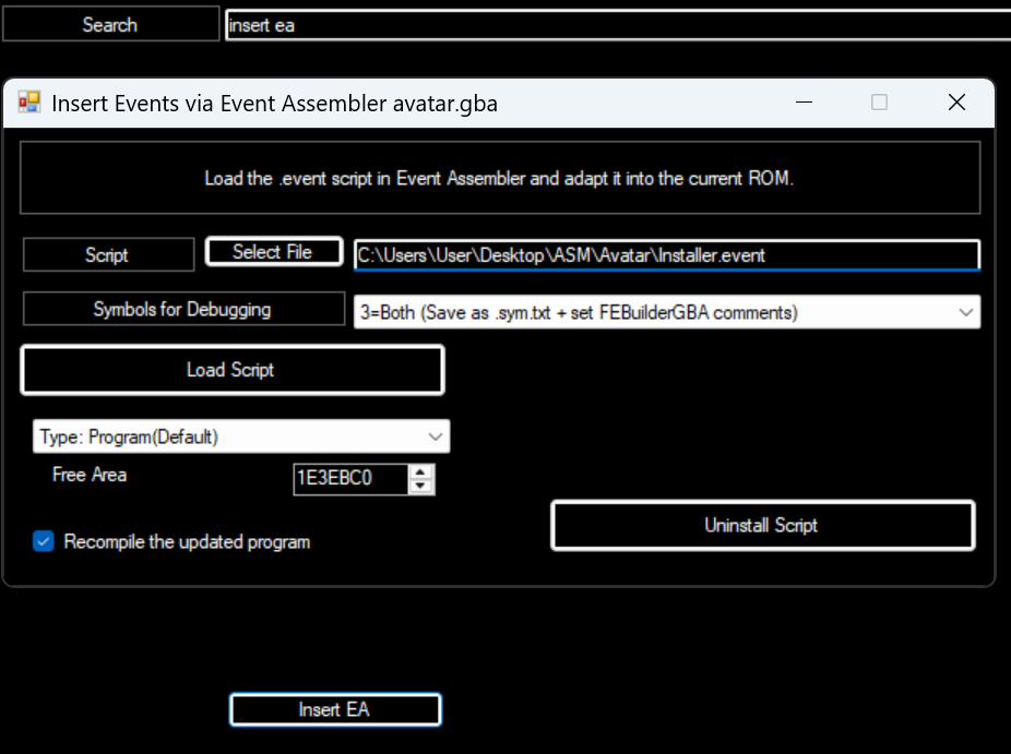 GeneratedInstaller.eventbased on the portraits you’ve put into these folders. It also tells you how many global flags you’re using. You only need to editGeneratedInstaller.eventif you want to add more toDynamicPortraitTable(more on that later) orPortraitPalReplacements, which allows changing specific colours of portraits if the corresponding flag is on.