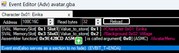 Copy the address (in my case, it’s 09E428CD) and use it in your events to start the avatar menu.