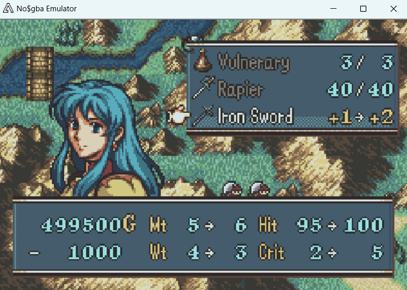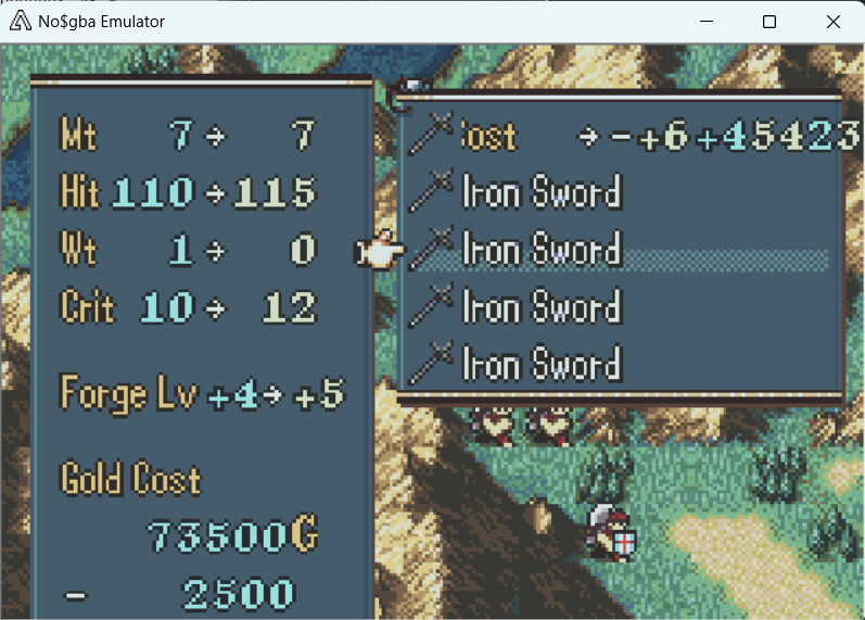 Not only that but I would need additional UI elements for specific stat upgrades in a forging menu, which I guarantee is beyond the functionality of gbafe menus.