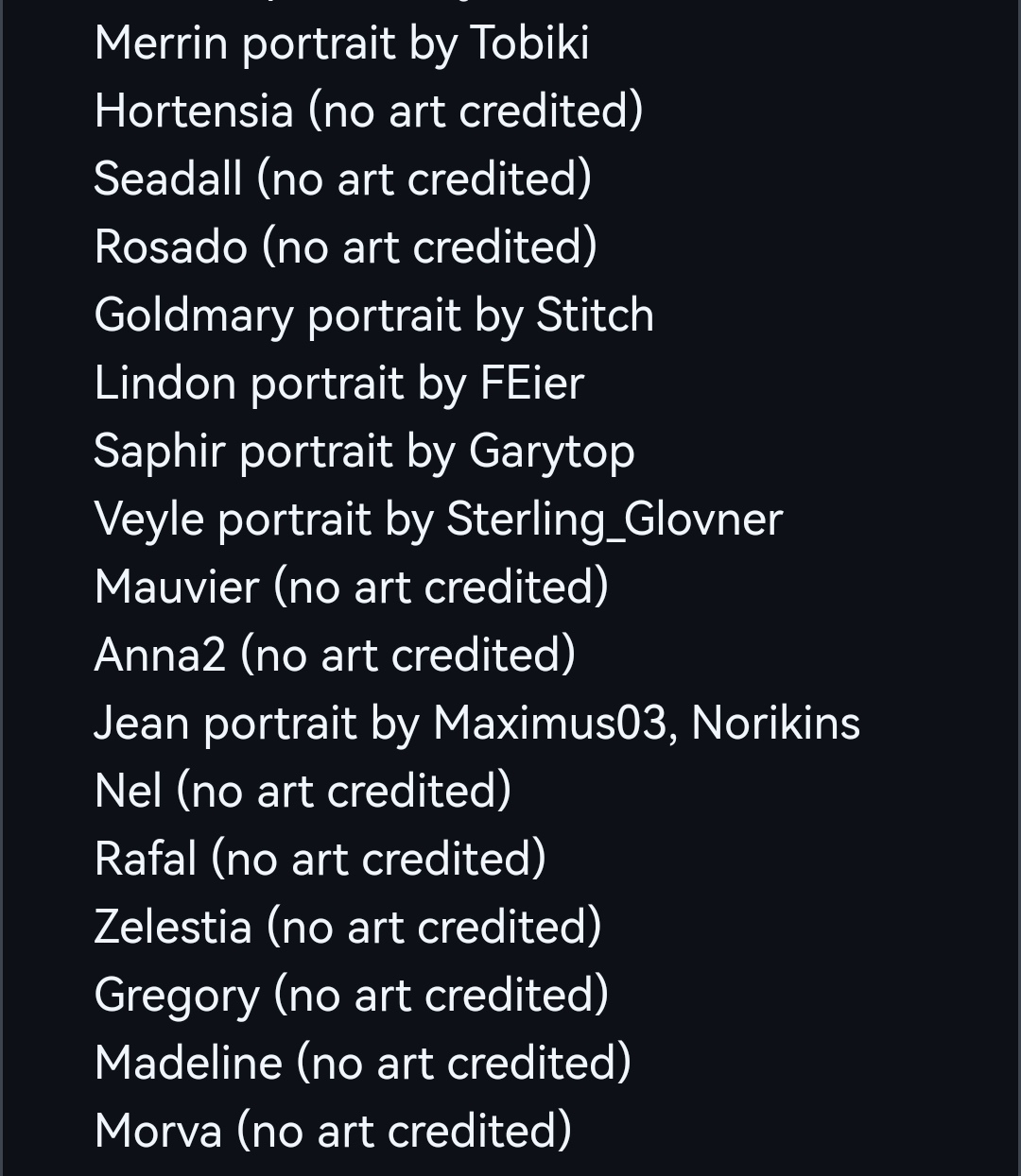 That just leaves Celine, Bunet, Seadall, Rosado, Nel, Rafal, Zelestia, Gregory, Madeline and Arval just left. That just ten characters left. We might actually be done in just a couple days.