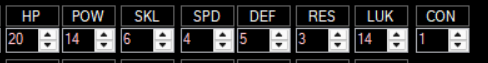 39 hp, 16 str, 20 skl, 17 spd, 7 def, 6 res, 6 lck, 13 con