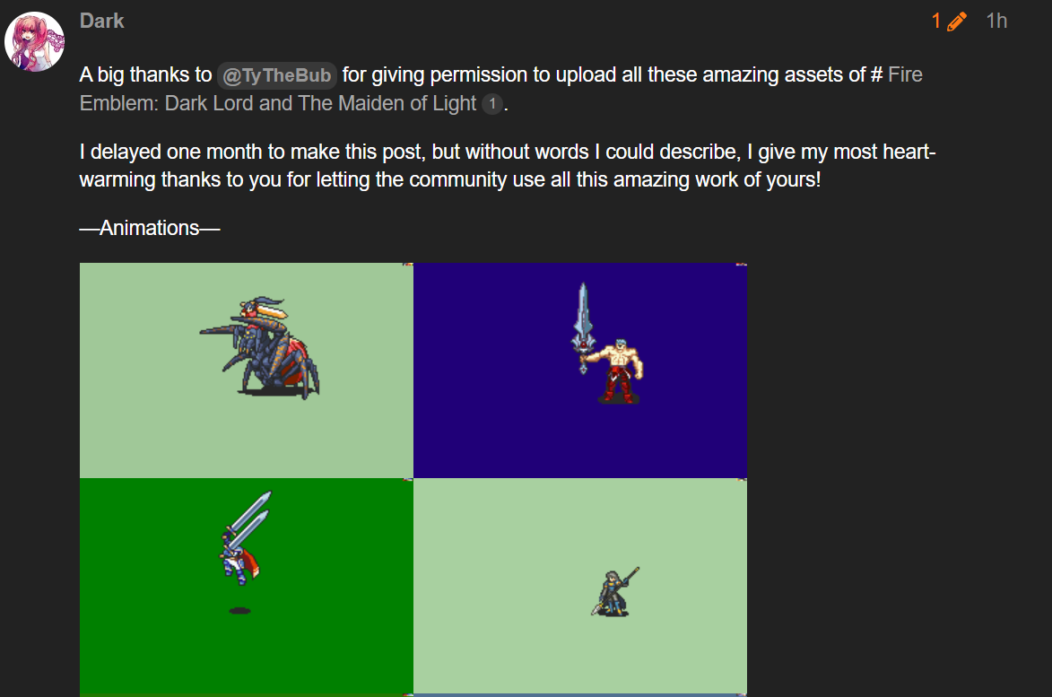 Wait, youâre saying MK404 made those? Because what Dark posted was an edit of the sprites Dellhonne posted. And I remember adding/crediting those to Dellhonne despite my misgivings because I wasnât sure he even made them.