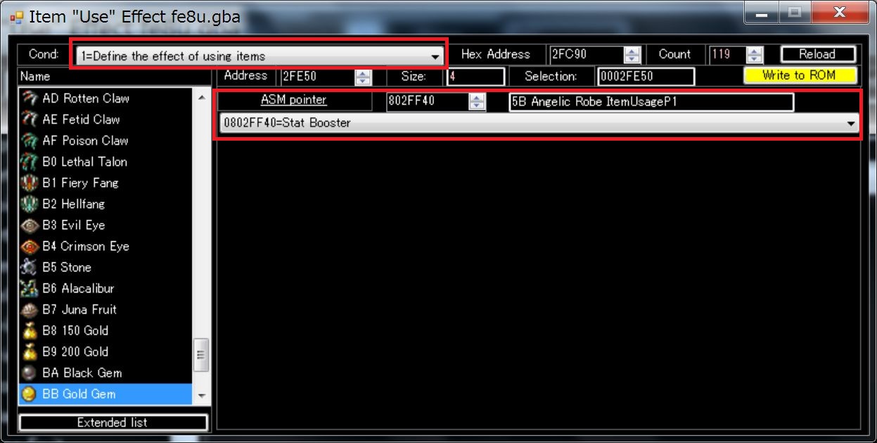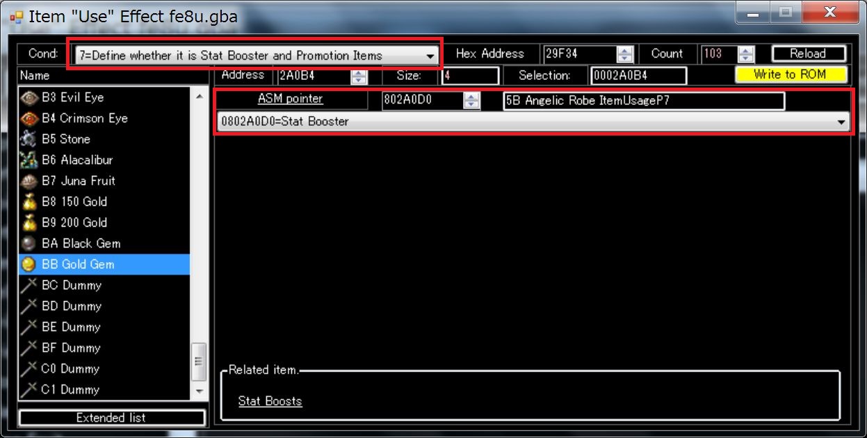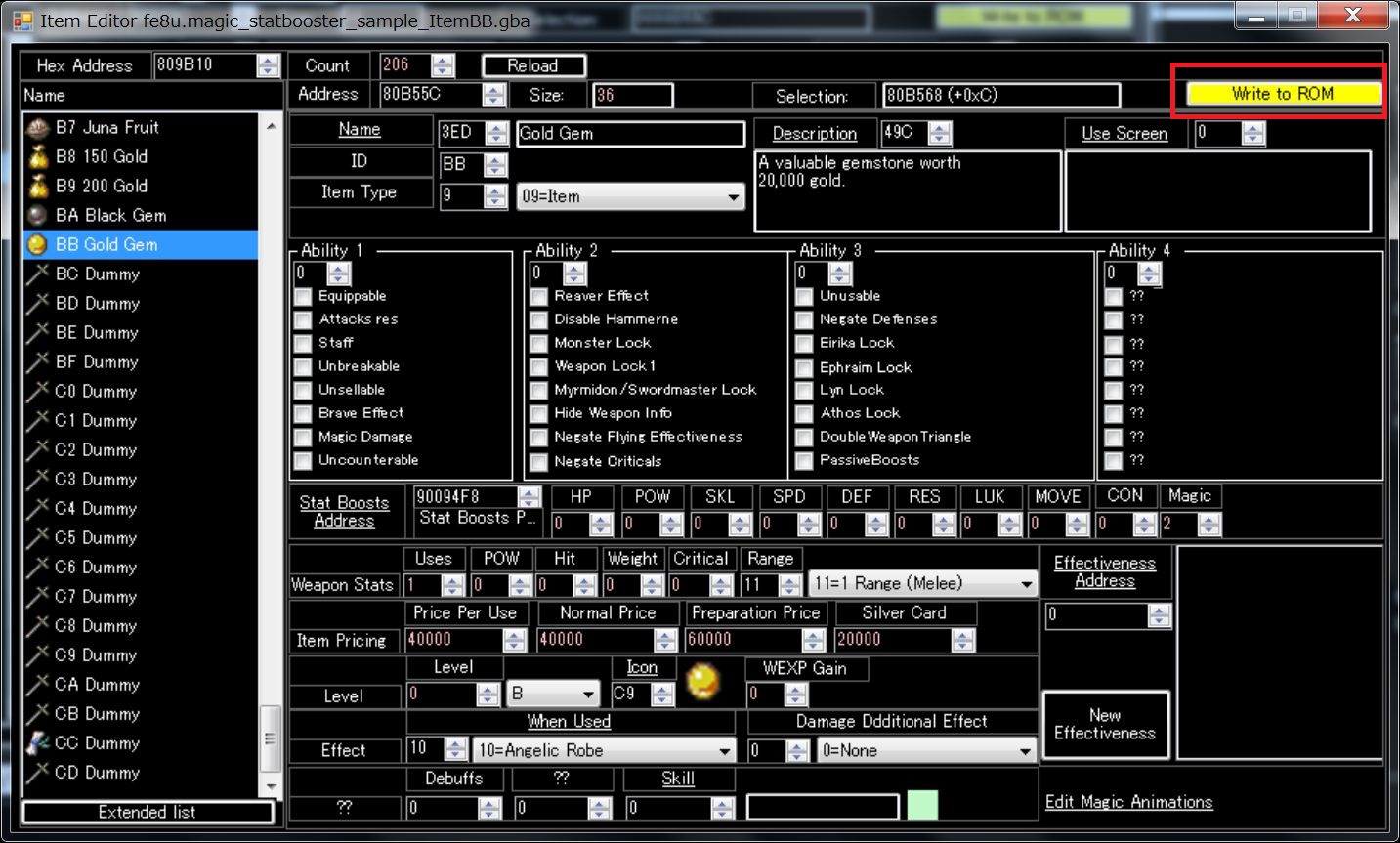 “0xBB Gold Gem” = “0802FF40=Stat Booster”