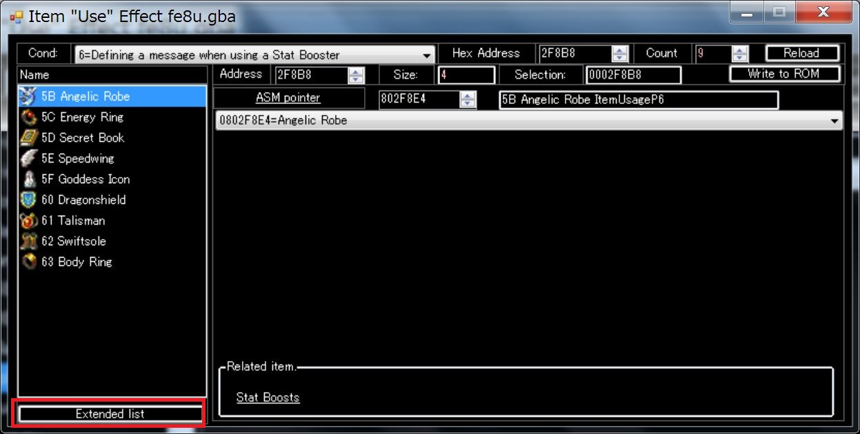 From the Item Editor, click on StatBoostsAddress to allocate space.