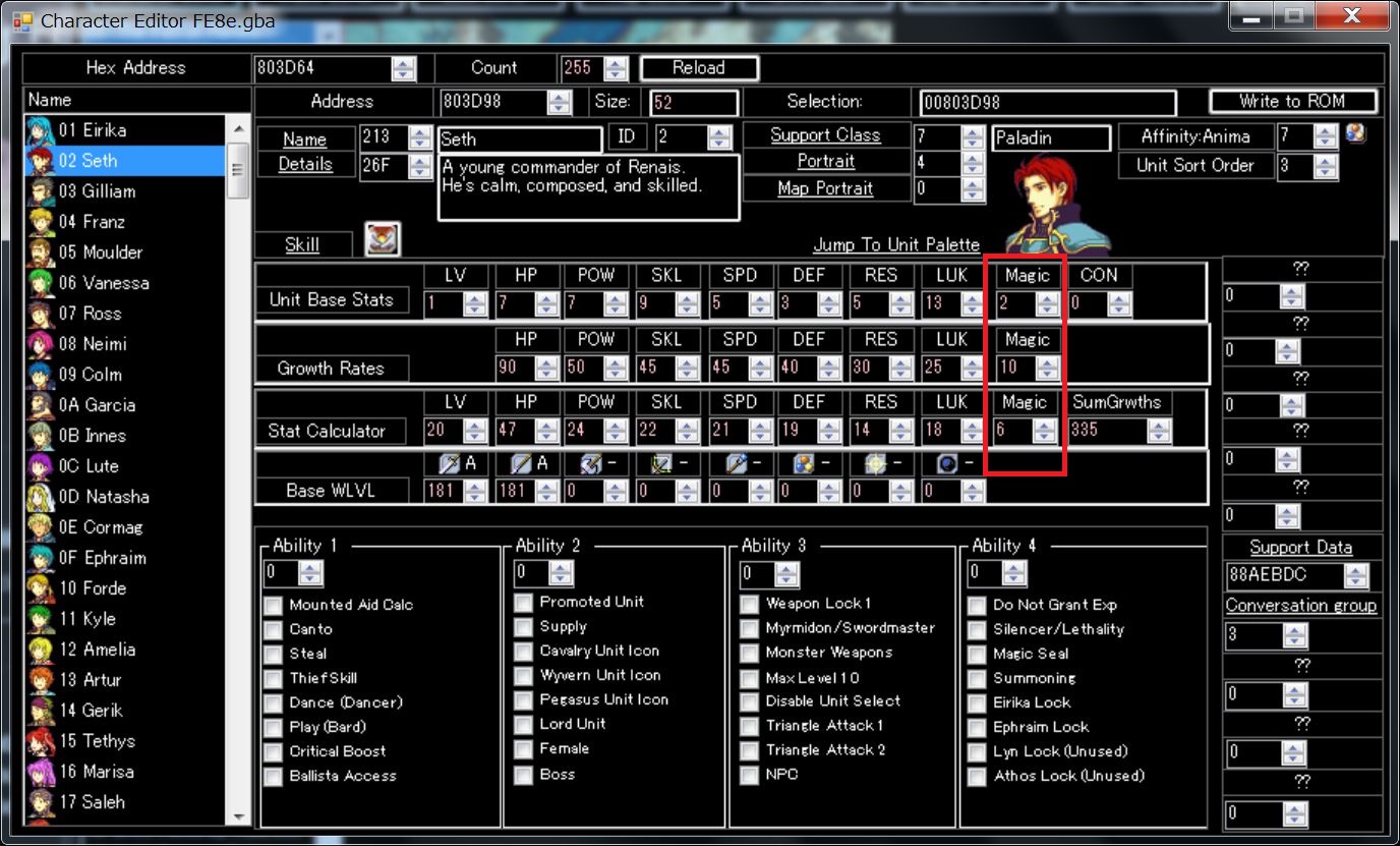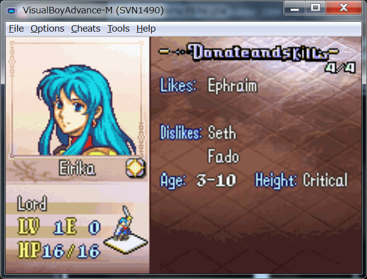 I’m not sure what this error is referring to. When I click it, it brings me to Glen in the character database, but he has no support data at all, either by default or by me. It might be superfluous but I thought I’d ask about it just in case. I have a report.7z prepped as well, I’ll include it below, but so far I haven’t started changing anything in the maps or events yet. I’ve only been playing around with characters, classes, and animations. The report needed a .sav file to make, but since I haven’t done anything in game yet, I just included a dummy save from an unmodded FE8.