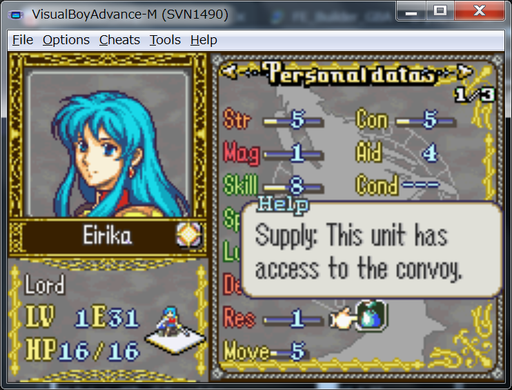 Then click on the Cheat tab and Eirika will be selected so you can pass the item here.