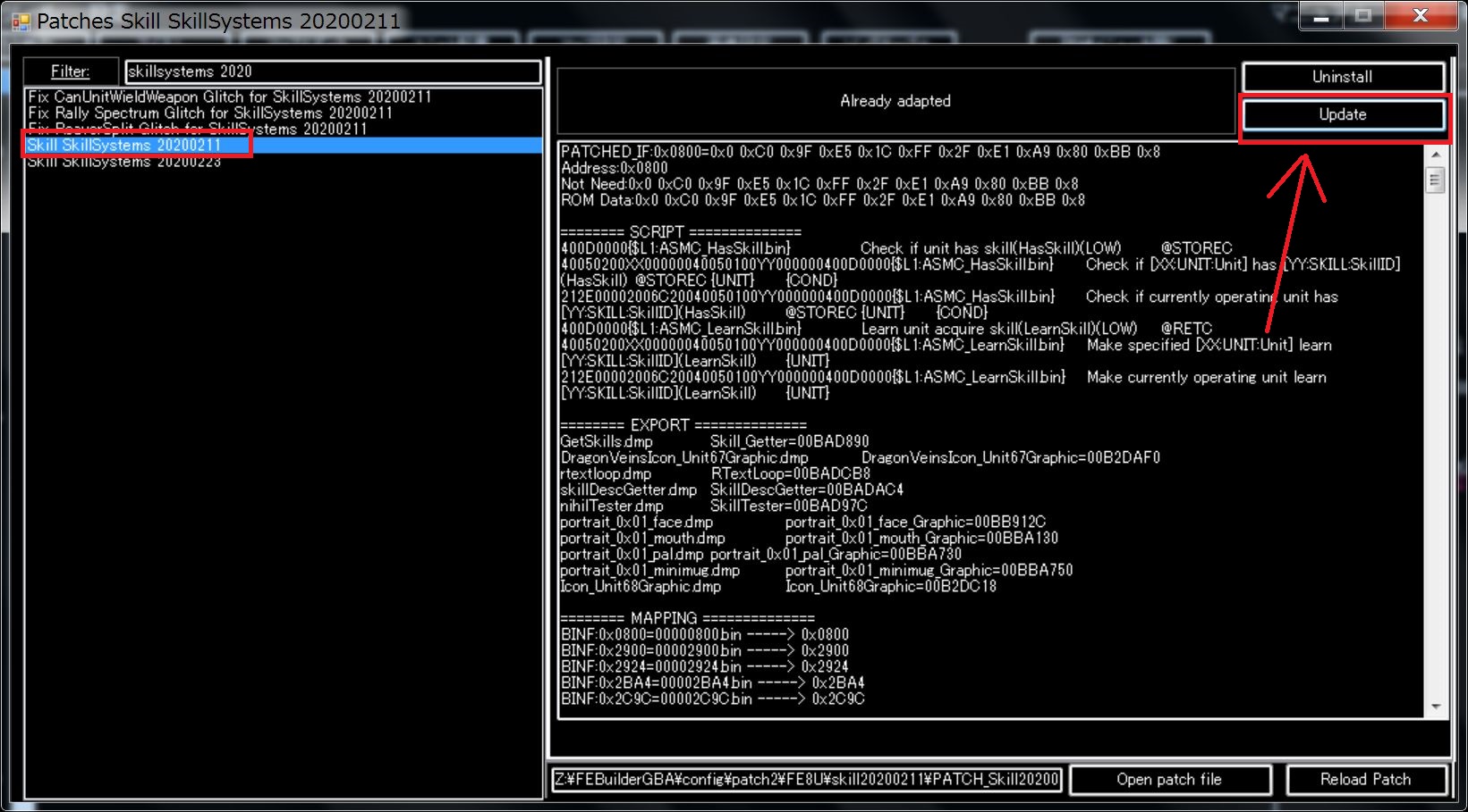 Now, when you install SkillSystems 20200223, the patch is automatically applied to the patch.