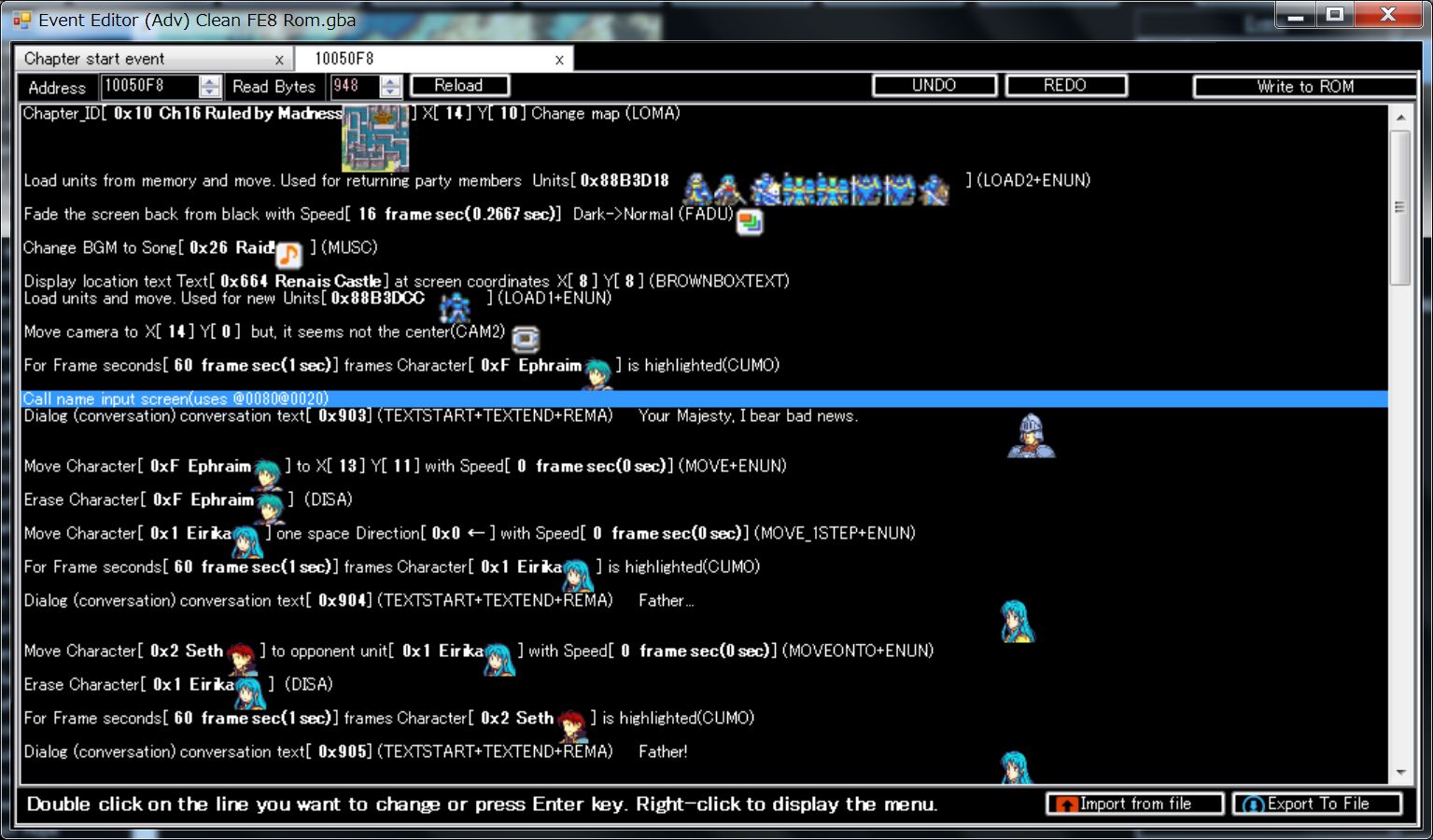 After pressing the F5 key to start the debugger, select Eirika in the game.