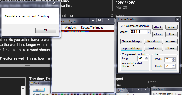Oh yes, I see. That was my mistake. You should import the graphics that you exportet via “GBA Graphics Editor” with “GBA Graphics editor” into the rom where you are translating. From what I know. FEBuilder can’t import images without a palette. And that’s why you use “GBA Graphics Editor”.