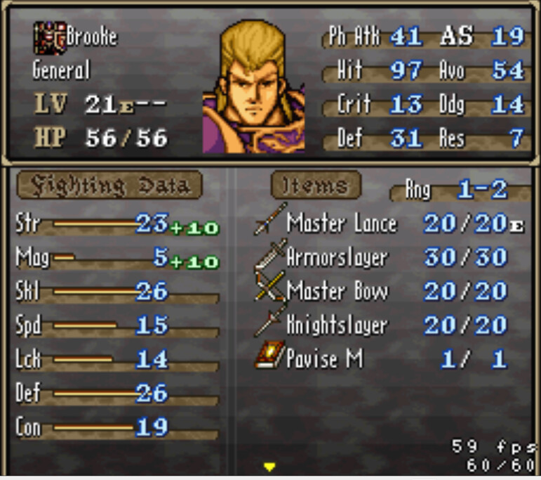 Brooke had the same face in vanilla as the man talking to Kempf, which was confusing and misleading, so his face was changed. This man uses Lawsonās portrait from Fire Emblem Gaiden, which was brushed up by the author of Super Thracia.
