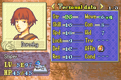 I love Dorothy so it’s a shame she’s the worst unit in the hack. What hinders her the most is her single weapon type combined the turn limit per map. If she promoted to Ranger or something she might be usable but alas.