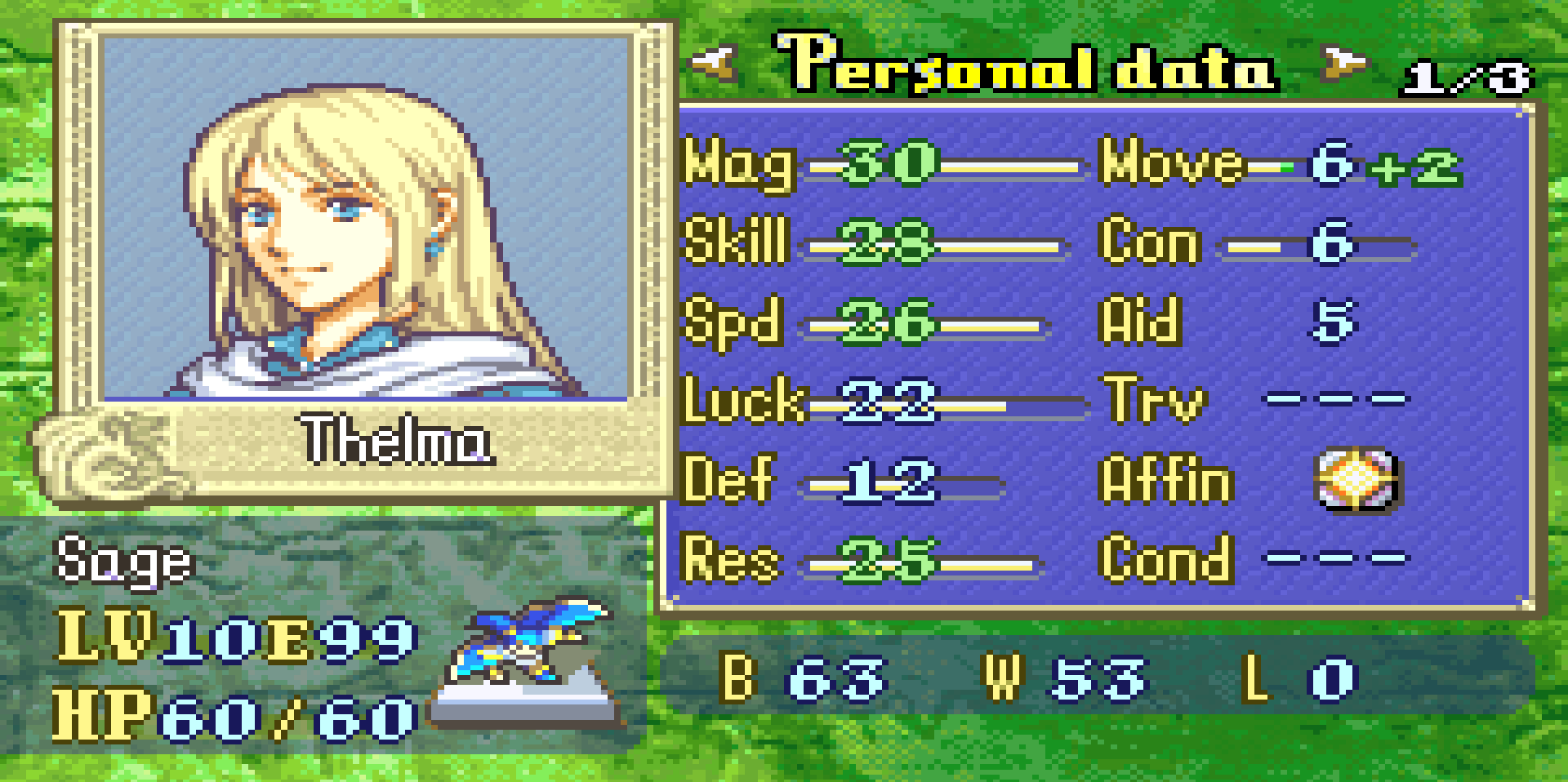 Thelma: Thelma couldn’t be used for a good portion of the game due to the lack of Light tomes. However, once she promoted, she became a killing machine. Love her.