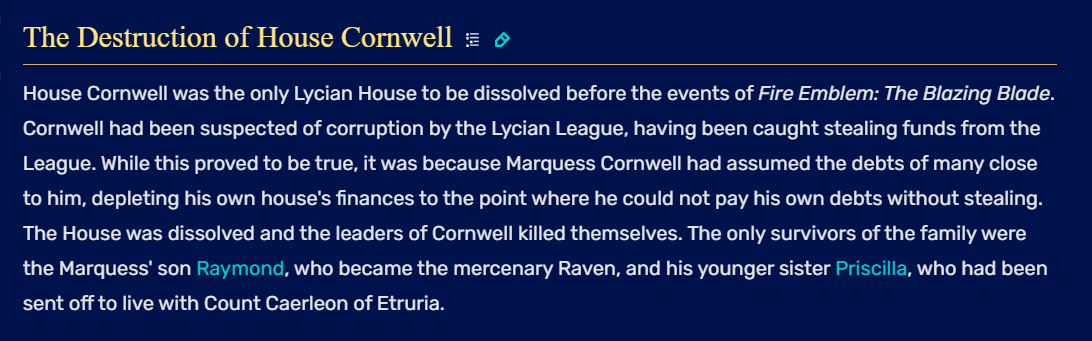 That is something I think you miss. But I now realize that, based on the little information given about House Cornwell in FE7, there was no way you could have included that solution in the story. If you had, House Cornwell would never have fallen, and it would have contradicted the FE7 canon lore. So, I’ll give it a pass