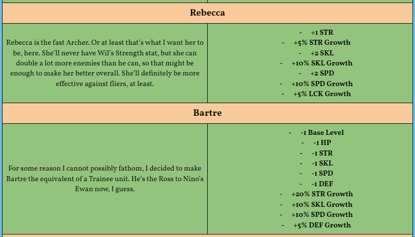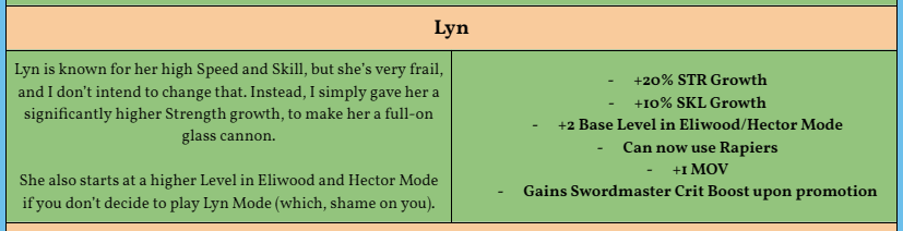 My current plan for Wallace is to just make him a pre-promote in Lyn Mode and raise his base Level in Eliwood/Hector Mode, probably give him some extra stats as well on top of that. Plus I’m buffing the base stats of the entire Armor Knight classline so