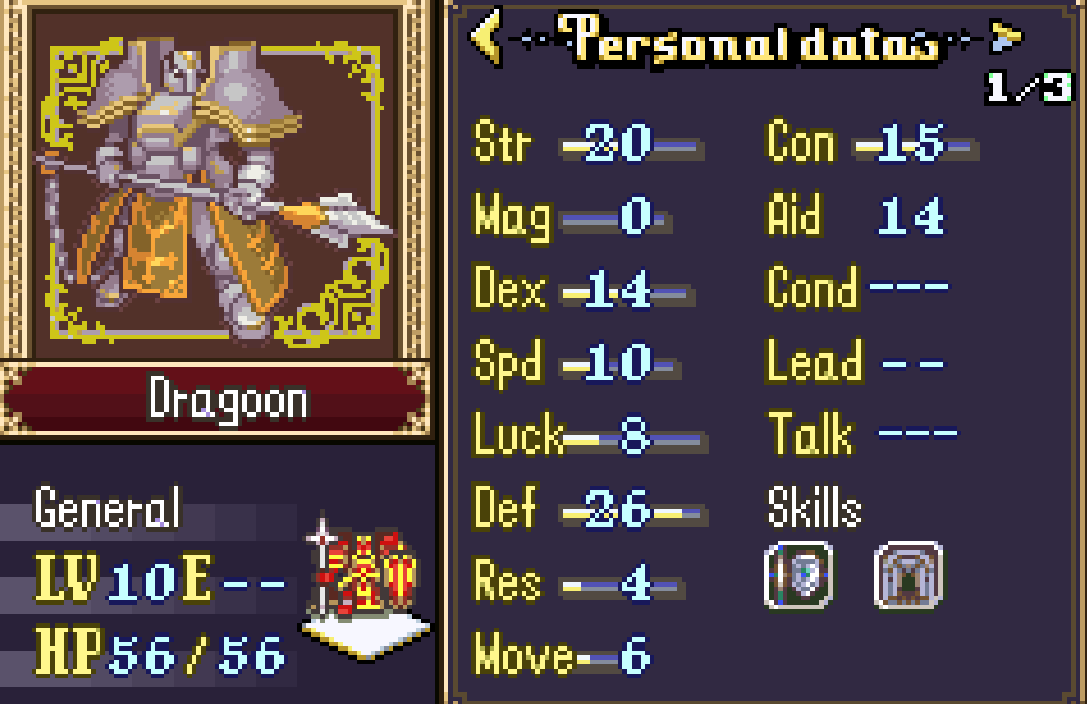 I understand the idea of dismounting, but I think it could be better managed. Why do the stats change when you mount or dismount? If Caeda has 28 in speed and dismounts from her Pegasus, she doesn’t gain any points. But when she mounts again, she loses 2 points and ends up at 26. The stats should be kept the same (apart from movement, of course) when you mount or dismount, or the maximums should be adjusted so that they follow the evolution of the stats, including in T1.