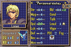 Sturdy lance wielder. Once has a Brave Lance he’s killing most things in one round. Overall strong, reliable guy.