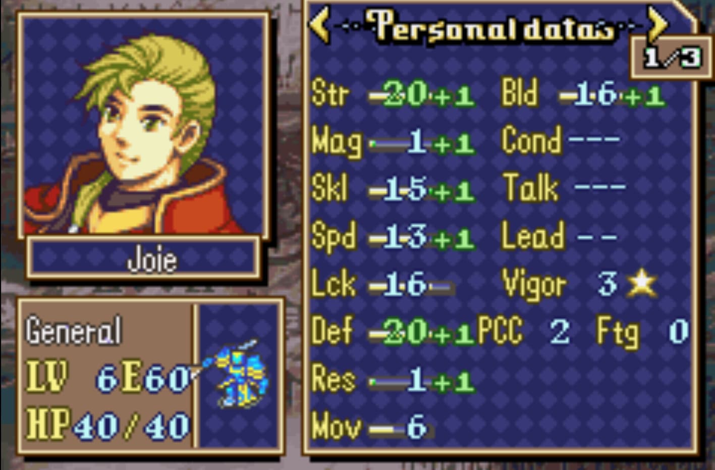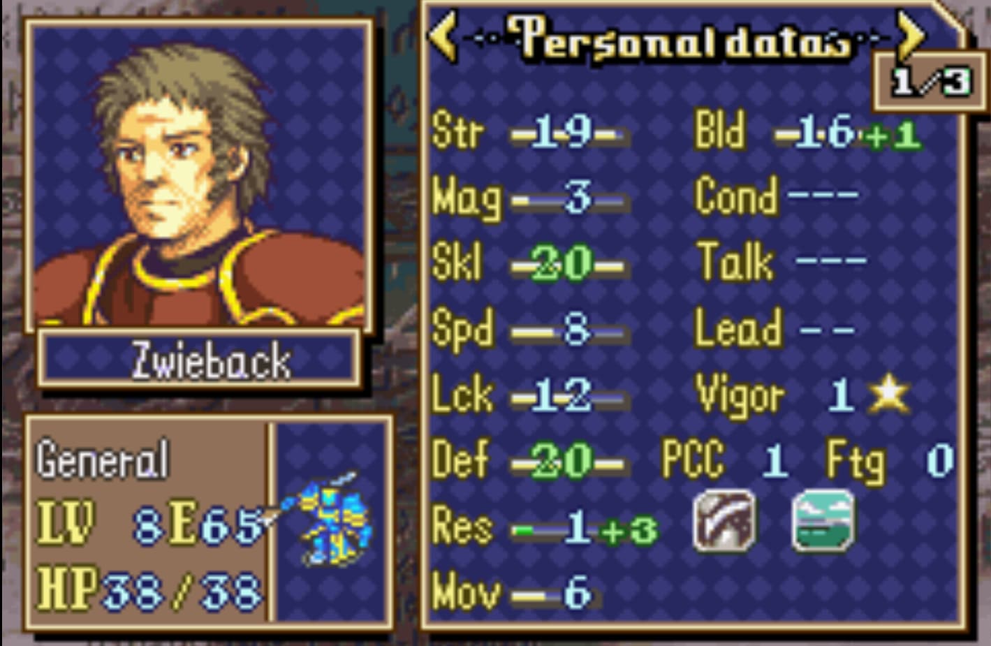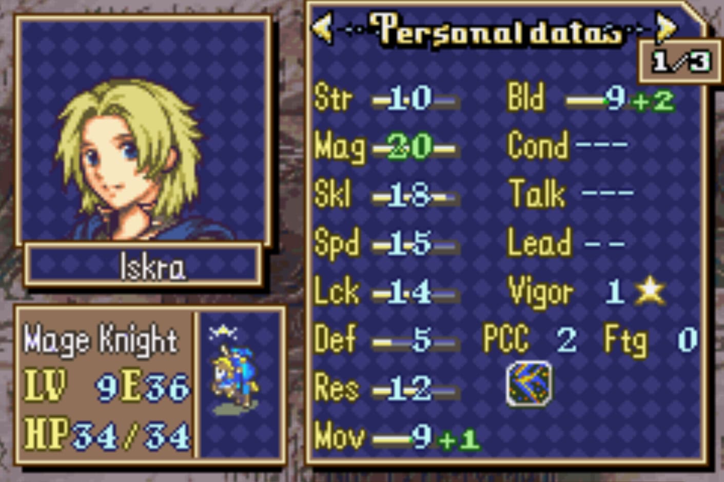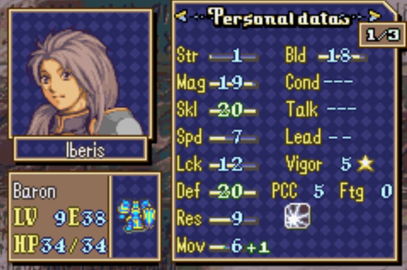 This one was just cruel. A 5 PCC hidden behind the worst Speed and growth in the game. AUGH! But I did like her a lot. She got to 9 speed by the end, which wouldn’t have been enough to double anything. But the dream is what kept everything alive. I did like her, but I don’t know if I would call her “good”. She tended to die a lot from magic.