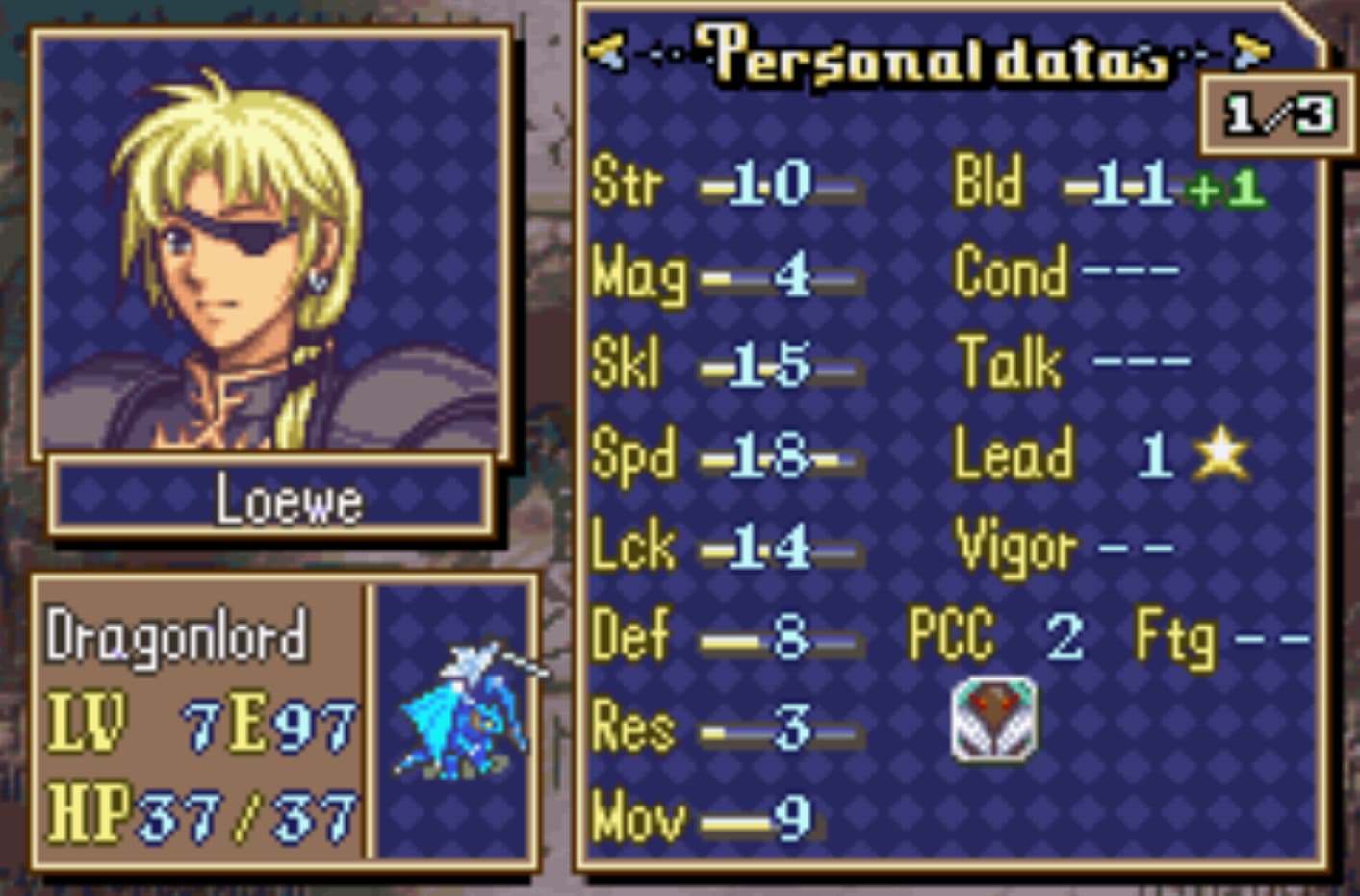 Peeyew! Man, that is some stinky strength! His utility was amazing, but man he needs some more oomph! If it wasn’t for effective damage, getting a nice sword… Loewe wasn’t so hot, I can’t lie.