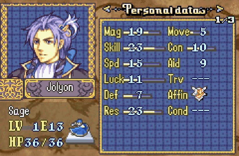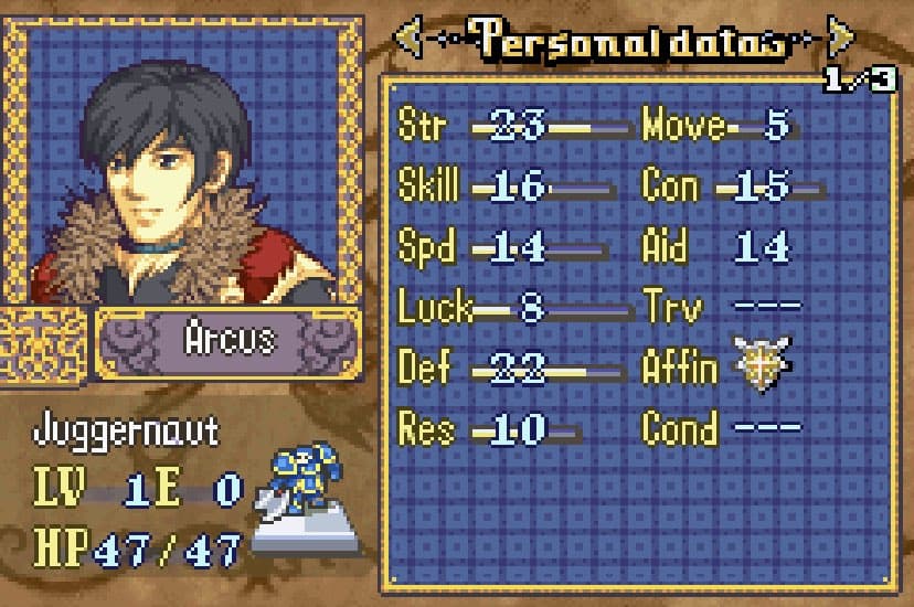 Another unit that joins the main character’s crew and having a prepromoted gladiator is a plus, if you don’t want to train Nari instead with a focus on axes than swords. Don’t know if the Raven! Hero Coat battle sprite or the Nuramon Armored Hero battle sprite would fit him, but either is fine.