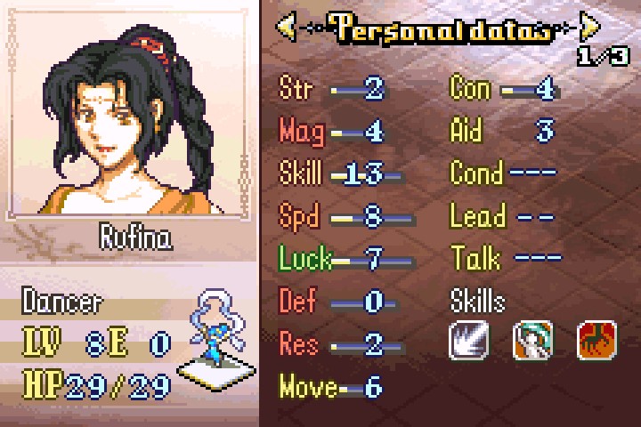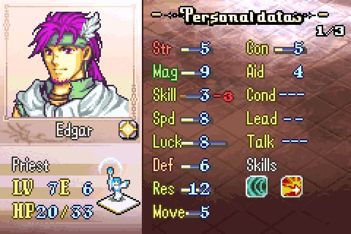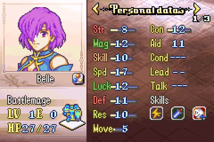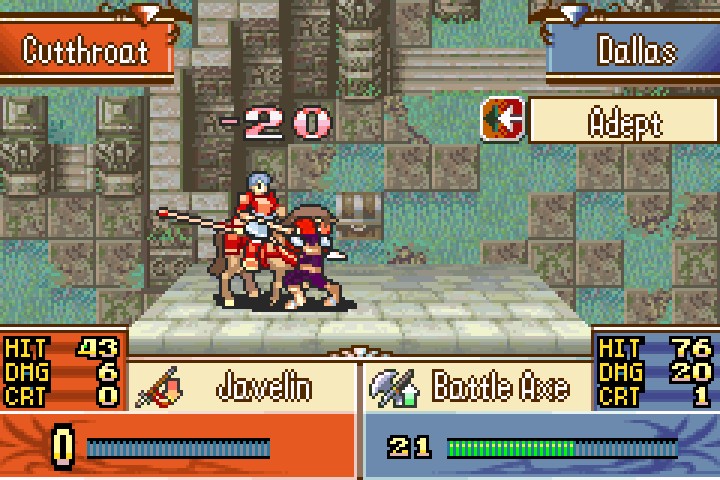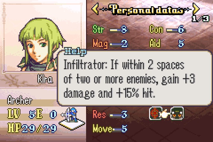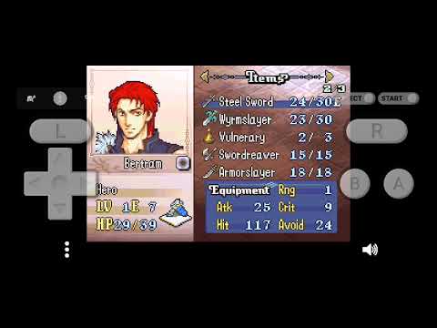 Realized maps probably are all new spins on fe8 maps. +10% use javelin/hand axe felt odd. Low use, high cost heal is worrying. First time I recall seeing res in terrain display was nice. Getting xp from visiting house was pleasant surprise. Was glad to get a point blank archer. Skill scrolls are nice.