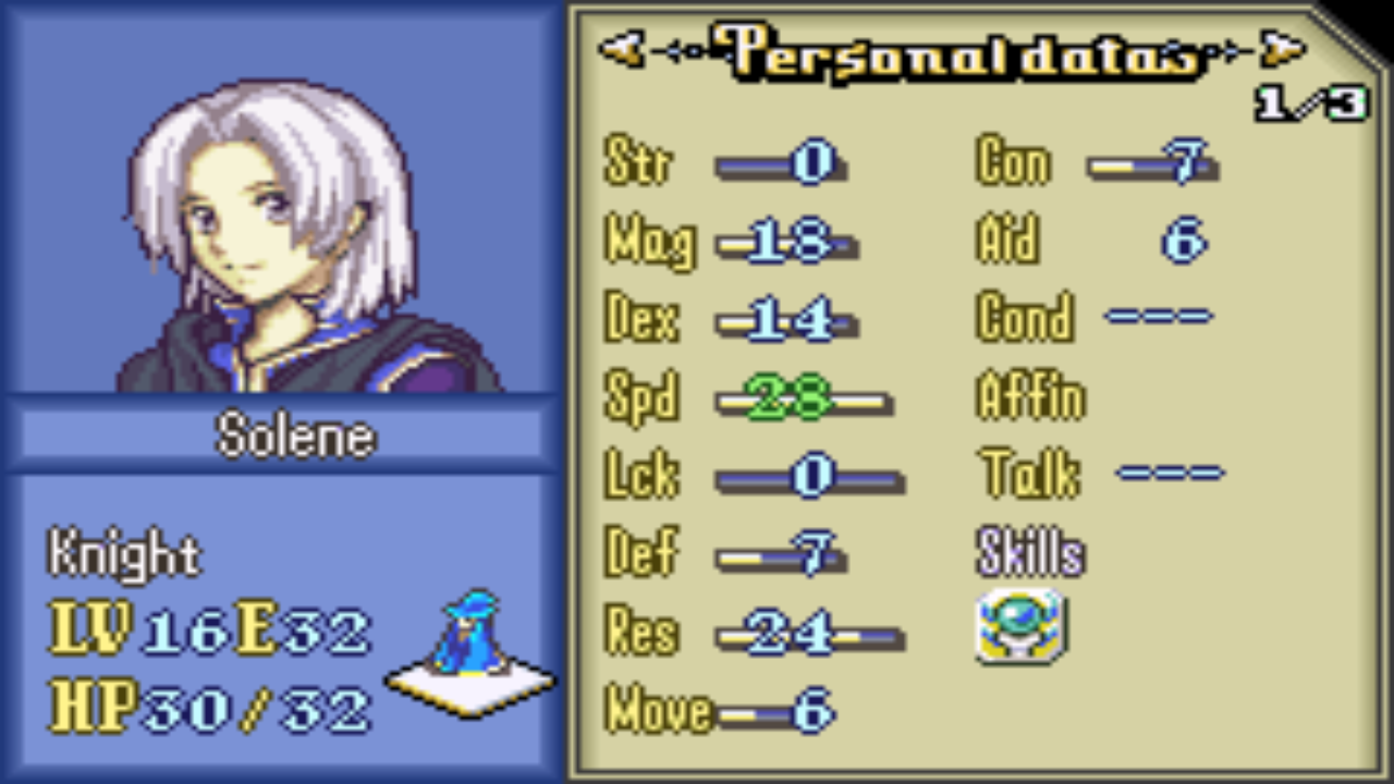 - Solene was mostly a staffbot/canto bot. Really struggled to deal damage and 0 luk meant Light shield was mandatory.