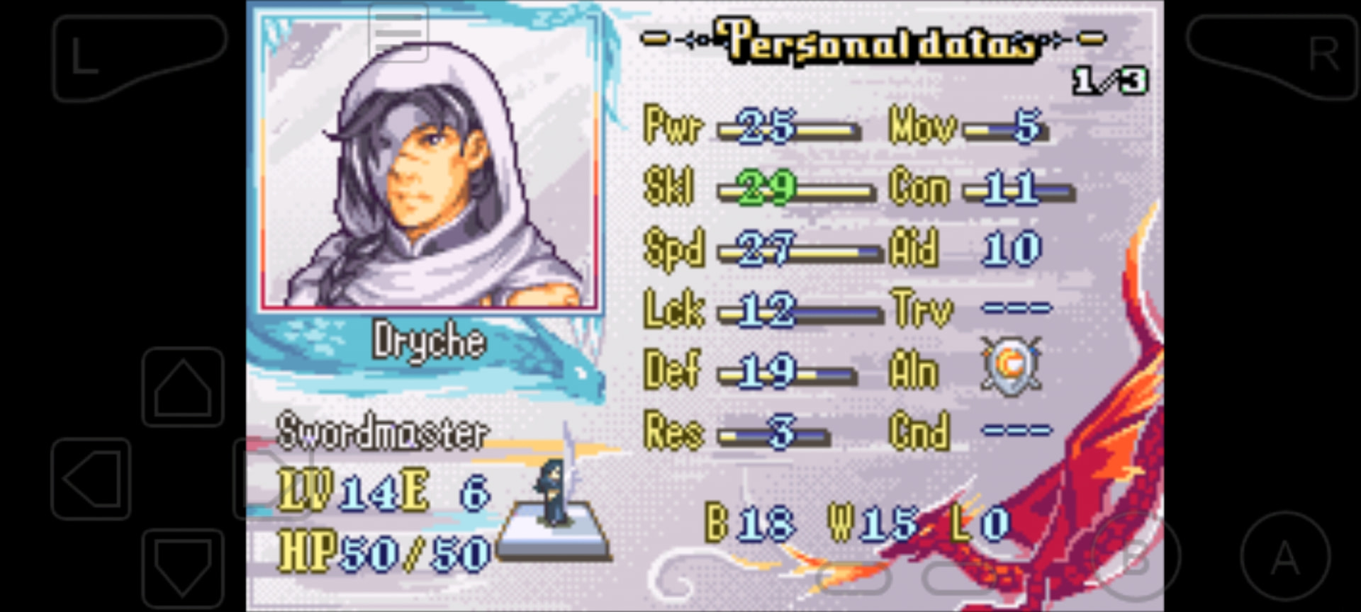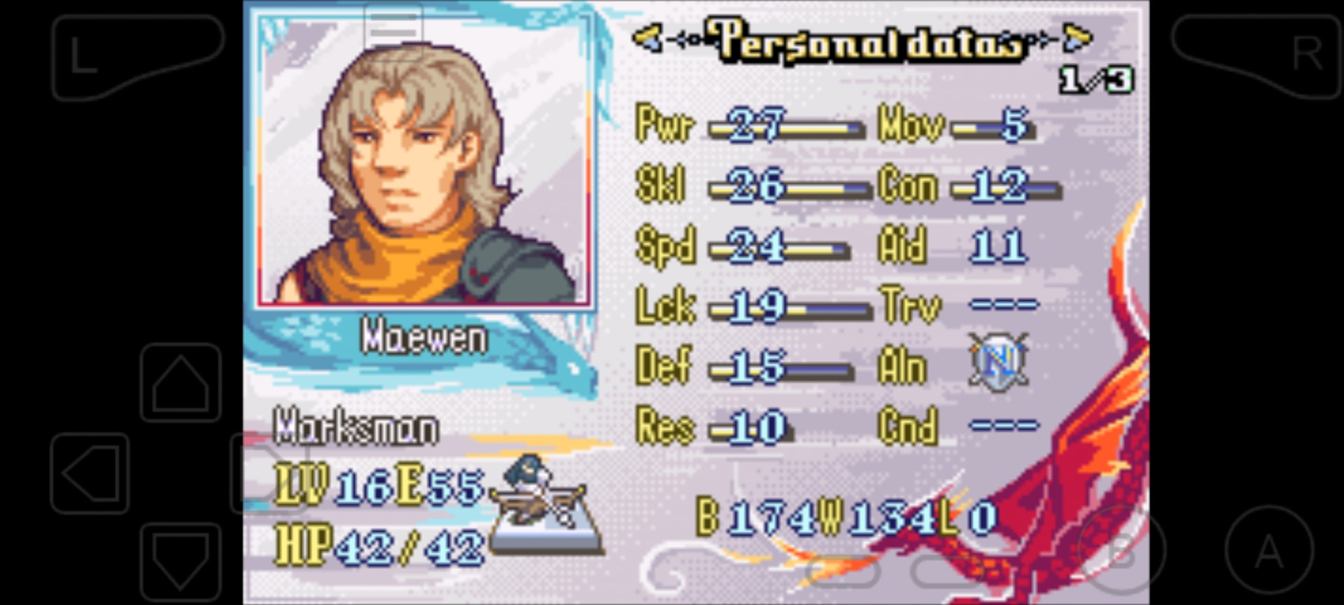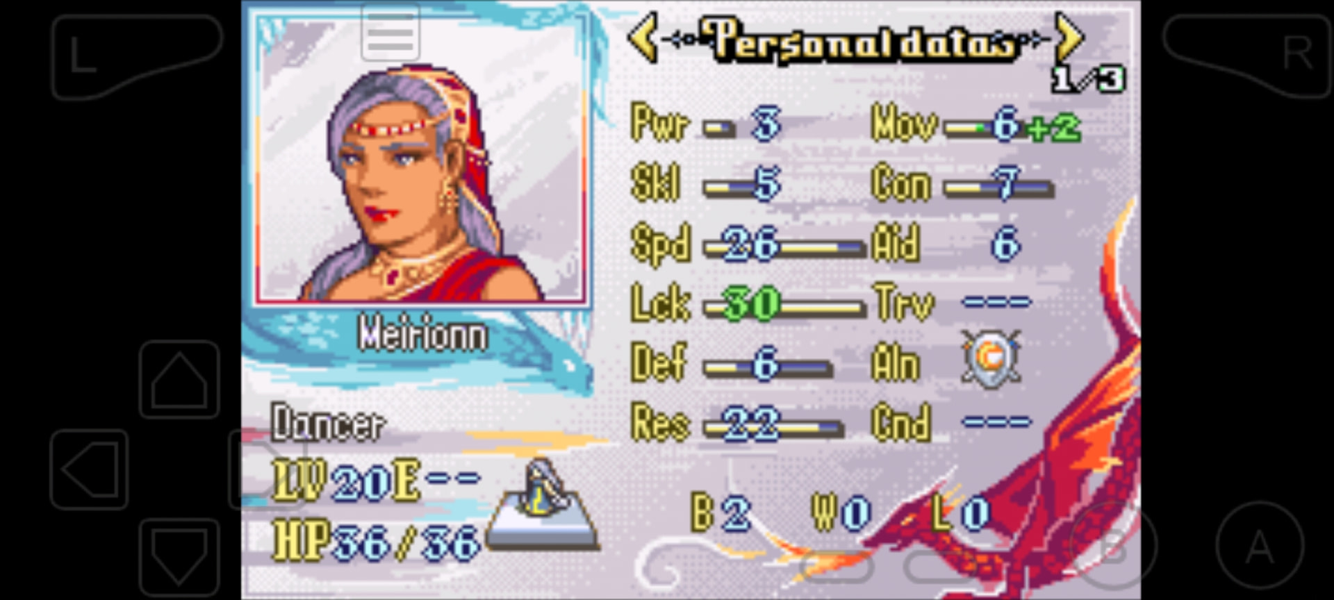 Earlygame healer, with an actual speed and defense stat? Gimme! Her lower Staff rank compared to the old man wasn’t really a burden, so she quickly assumed healing duties, and later became the sole user of Unmaking Wish. Worth promoting later.