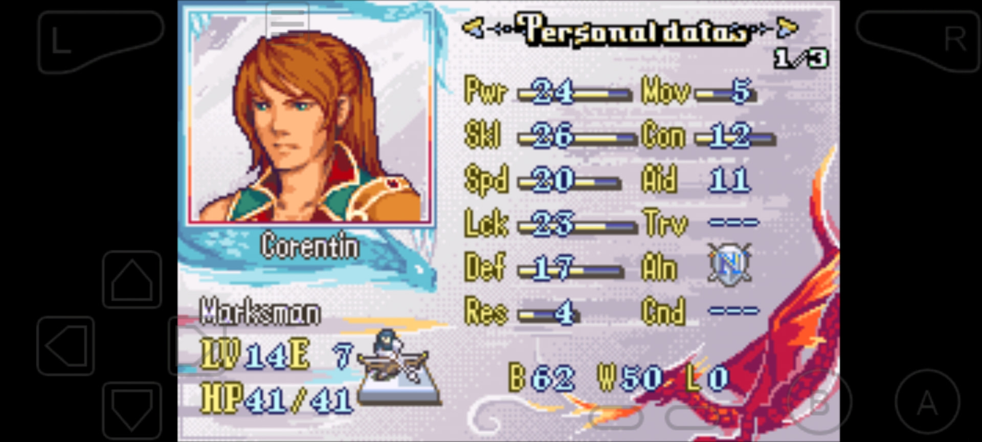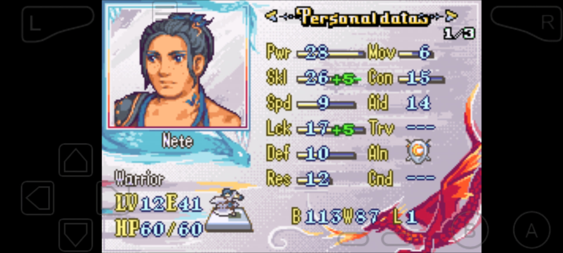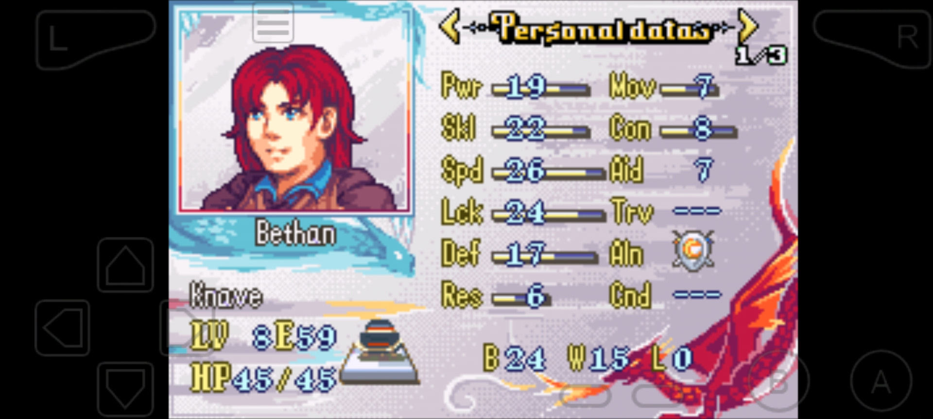 Earlygame healer, with an actual speed and defense stat? Gimme! Her lower Staff rank compared to the old man wasn’t really a burden, so she quickly assumed healing duties, and later became the sole user of Unmaking Wish. Worth promoting later.