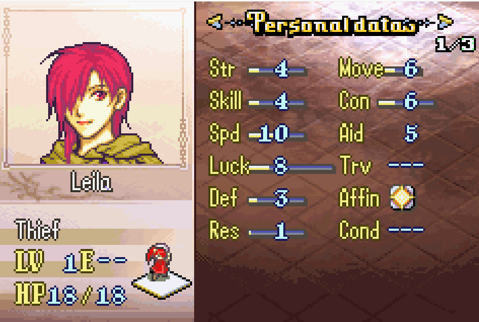 this is just leila from fe7 with colms stats. she’s even got the same name, and so many other characters have names from fe7. nothing much has changed at all really