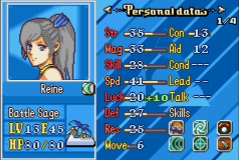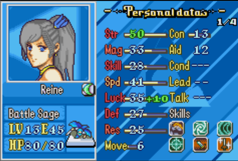 In case you havenāt noticed, Reine gains +15 strength and luck and the ability armsthrift.