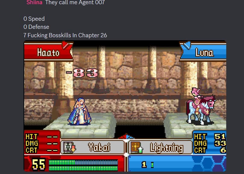 Roboco is fucking busted as a combat unit even with like only 19 fucking strength in endgame. Consider that Rifle ignores defense and you add bowfaire and suddenly an impale proc does over 120 damage at base. the only reason why she wasnât used the whole game was because sheâs super reliant on having rifle uses to actually do anything, once you get her gaiden and capture like 4 rifles for her itâs enough for her to basically shit on everything for the rest of the game.