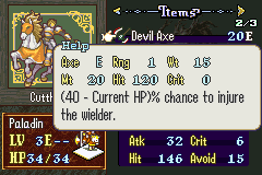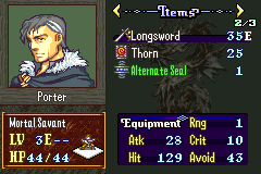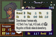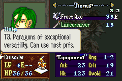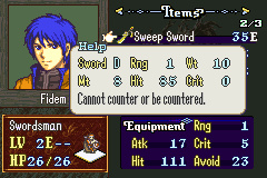 Speaking of the gameplay, we’ve got quite a unique set of systems here. The lack of skillsystems may make you think that this is a simple vanilla style hack, but this is no FE7. This game’s main draw is in its diverse weapon pool which allows for dynamic and electric turn to turn action.
