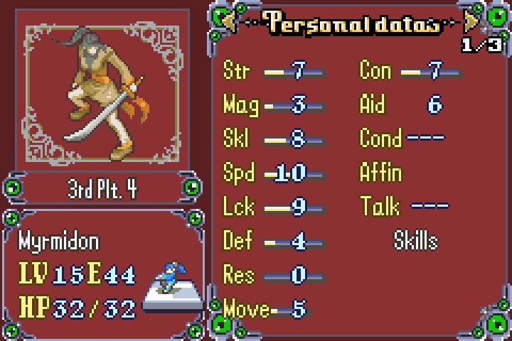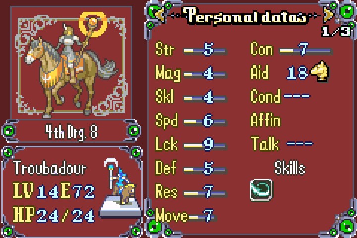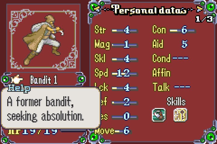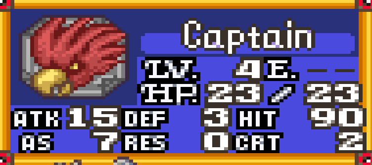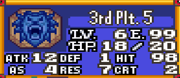 This was a bug that this convo inspired me to fix and update the patch for (the bug was that if you selected an enemy unit during preps, then quit back to the menu, then opened a playable unit’s statscreen, the background would remain red instead of switching to blue like it does during a map).