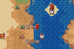 For my lower squad there was a tiny glimmer of hope that in my panic I didn’t see at first, that was Miner2 and her waterwalking abilities. I thought to myself if I stall death reinforcements a bit I could ferry several people over the sea, the first one that she would help out was my cavalier, my cavalier that was supposed to get another unit to safety, but didn’t because of my hesitation to leave everyone else to die.