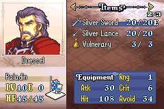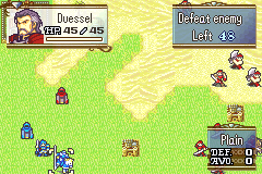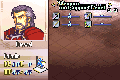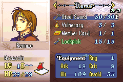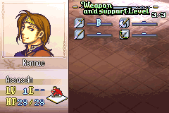 As a result of these changes, the following classes are no longer available: Pirate, Great Knight, Wyvern Knight, Mage Knight, Rogue, Ranger, and Summoner. Rennac has been changed into an Assassin and now carries a Lockpick in his inventory, and Duessel has been changed into a Paladin. His Silver Axe has also been replaced with a Silver Sword. Aside from that, this is simply the classic FE8 experience, unchanged.