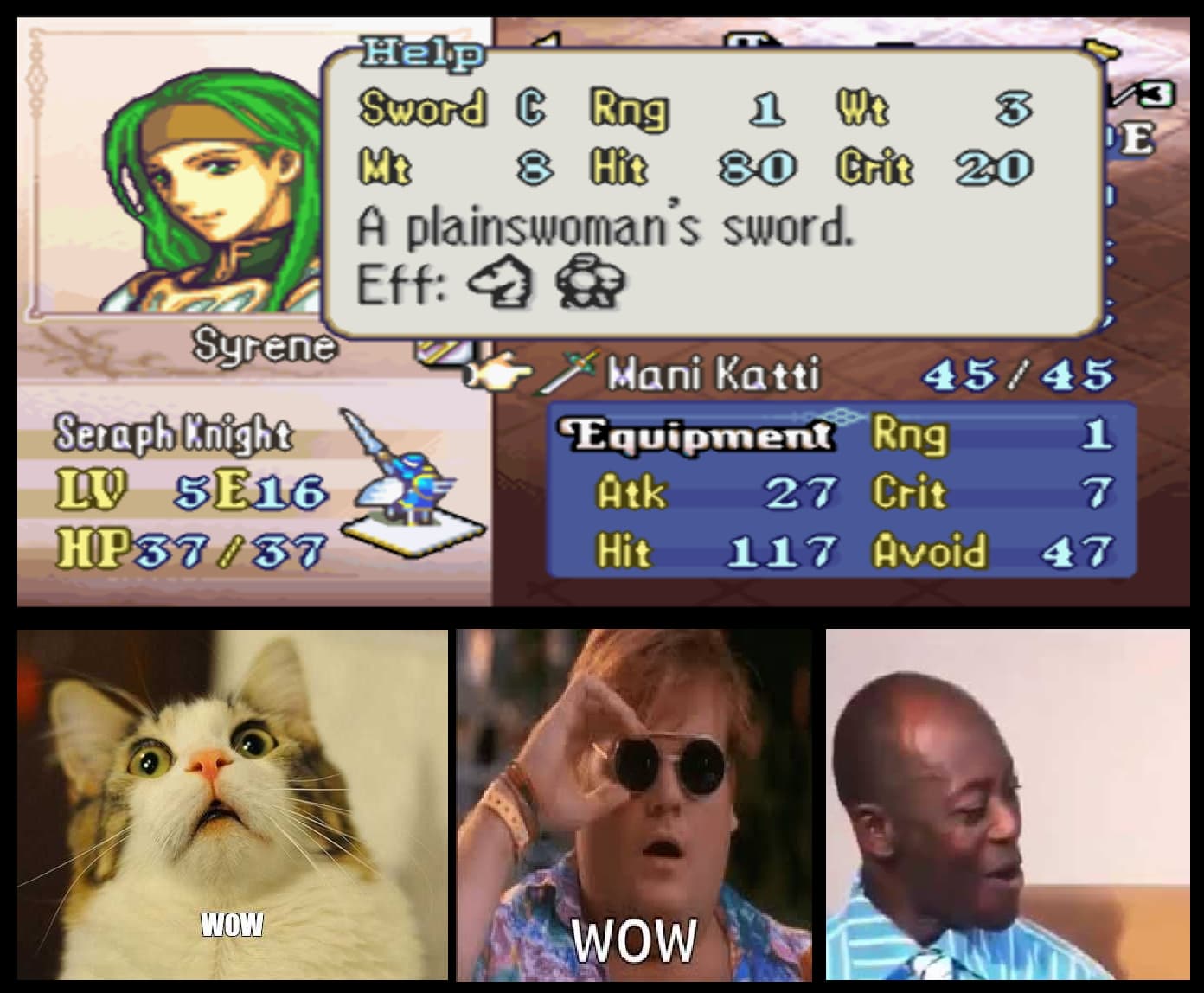 - Syrene now starts as a Level 16 Pegasus knight with an Elysian Whip in her inventory, allowing the player to choose her T2 class. Her unique T3 class Seraph Knight is still available as a story-based promotion after Chapter 26