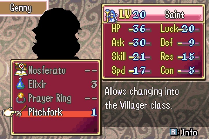 Hello, love the romhack and having a lot of fun with it. A general question that anyone might know, are there level caps in this game? I have the 4 starting Villager characters and debating whether I go ahead and use the Mila Statue Class upgrade as soon as it is available or wait for them to get more stat increases via leveling. I am a person that level grinds, so the time commitment is not a variable for me. I just didn’t know whether if I got a Villager to level 10 (for easy math) does reclassing revert them to level 1 but in the new class and keep the increases or if they would be level 10 in the new class but losing overall stat increases.