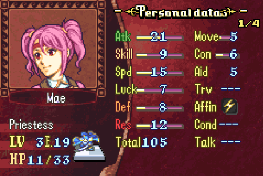 Iām on the final chapter now. I never played Gaiden or Echoes, so I canāt speak to how faithfully the story or gameplay mechanics were implemented, but this was a very enjoyable hack. Hereās my thoughts on the game as a whole, as well as my final squad with comments on each unit.