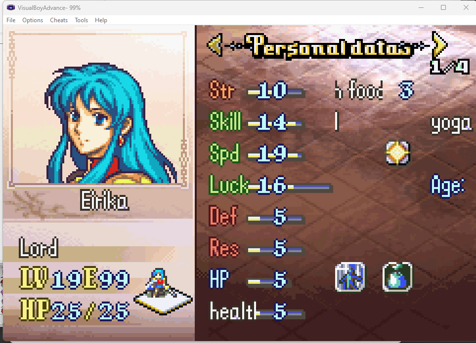 When pressing select on the stat screen, the growths display is broken. Somehow, showing text from Personal Data.