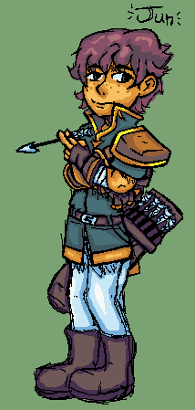 Jun: Sadie’s older brother, a skilled archer who’s bad with directions. Absolutely nothing like his sister, doesn’t want that trauma to define the person he is. Not the brightest sort, and tries to cover that up by using big words he more than likely doesn’t know the proper meaning of. Inscrutable as he might think he’s being…