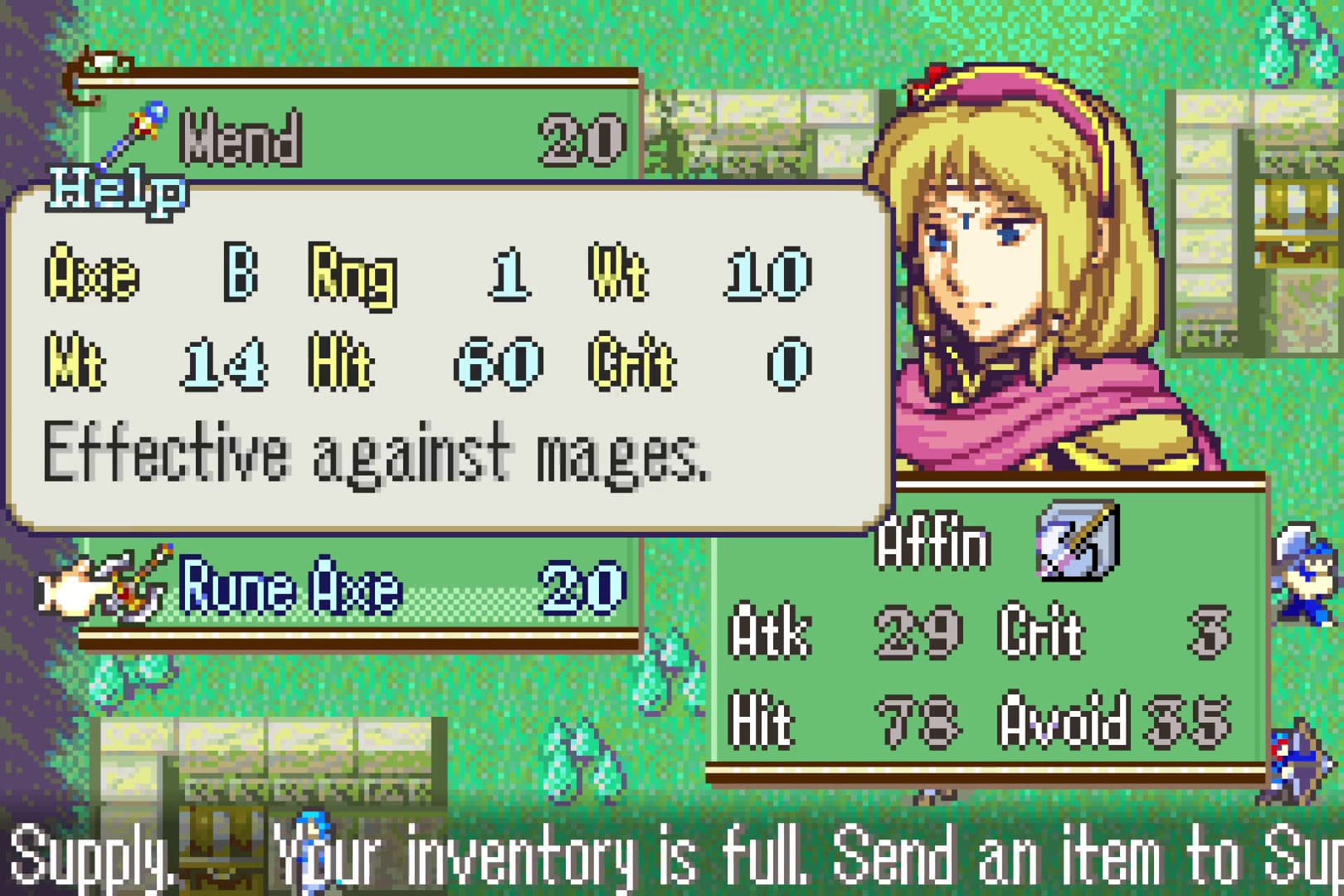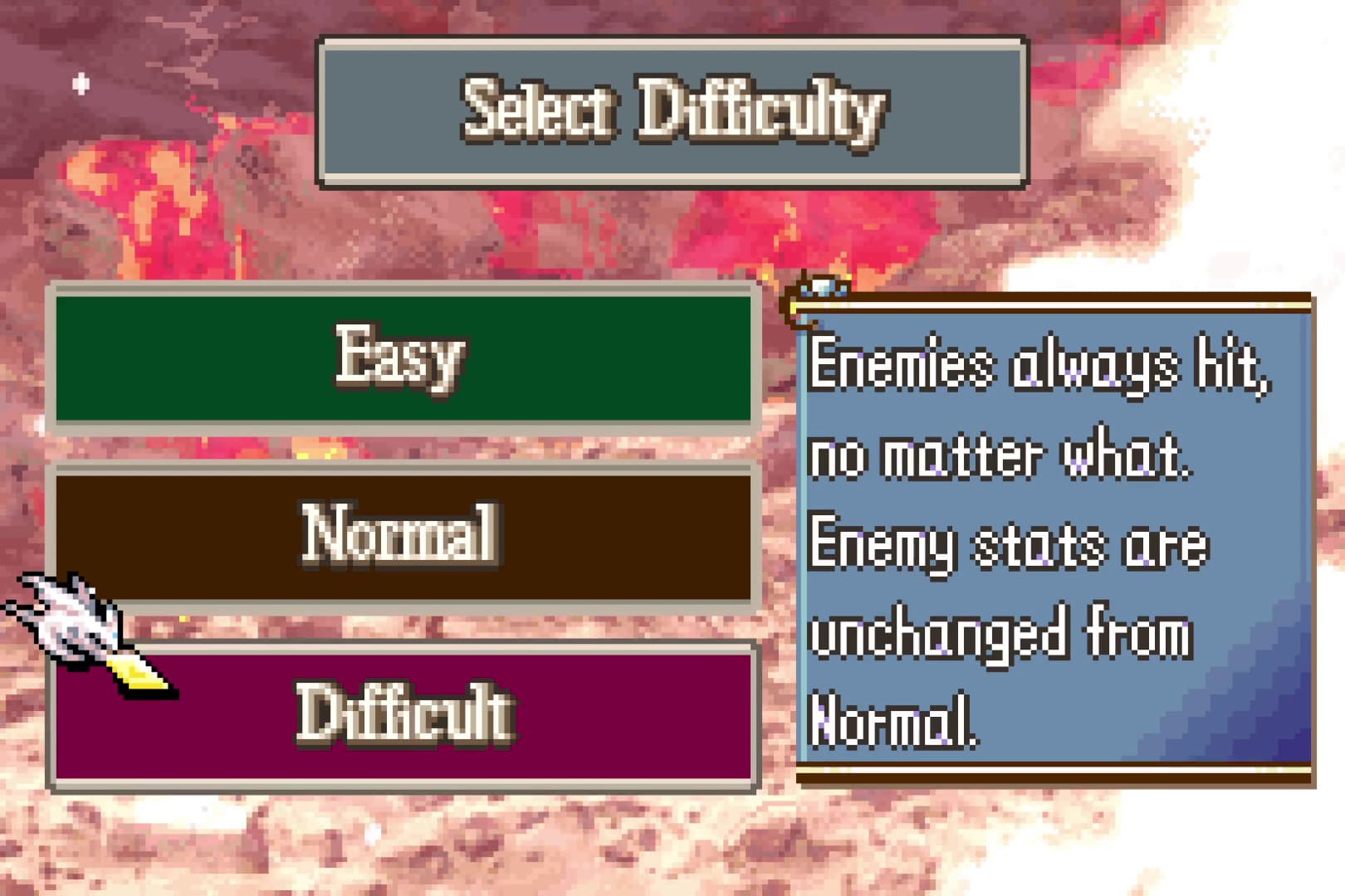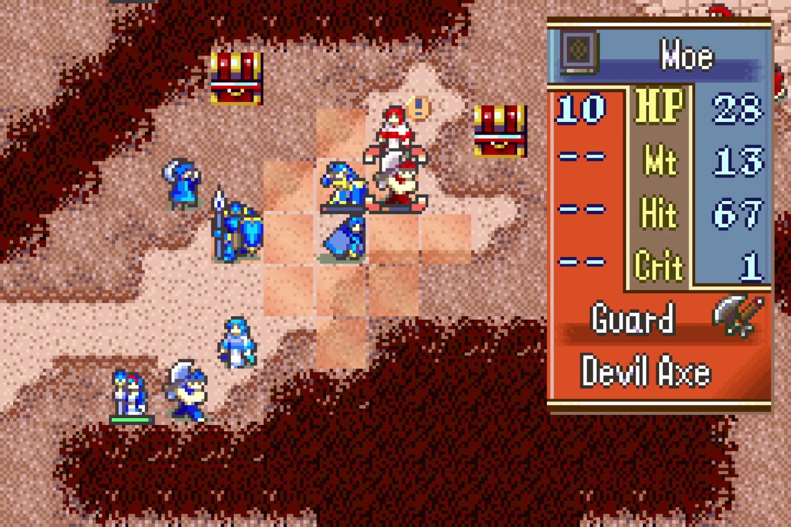 I wanted to try making my own Fire Emblem game, using what I’ve learned from messing around with the GBA games in FEBuilder, and creating something that fixes the issues I have with vanilla FE, something that I would find really fun. The main goal was to make a short, highly replayable game that still felt like Fire Emblem. Originally, I wanted it to only be 10 chapters long, but I upped the count to 13 as I got more ideas for things I wanted to do.