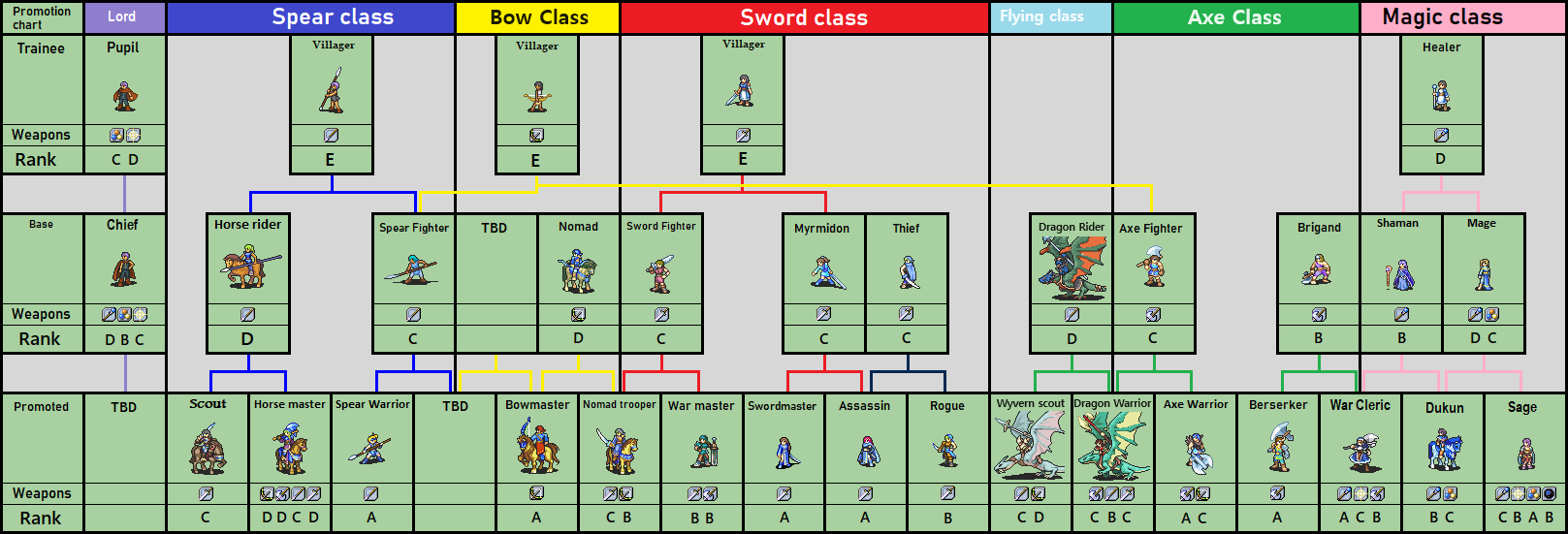 Promoted class branches like standard FE8 (see class chart in “Helpful Information”)
