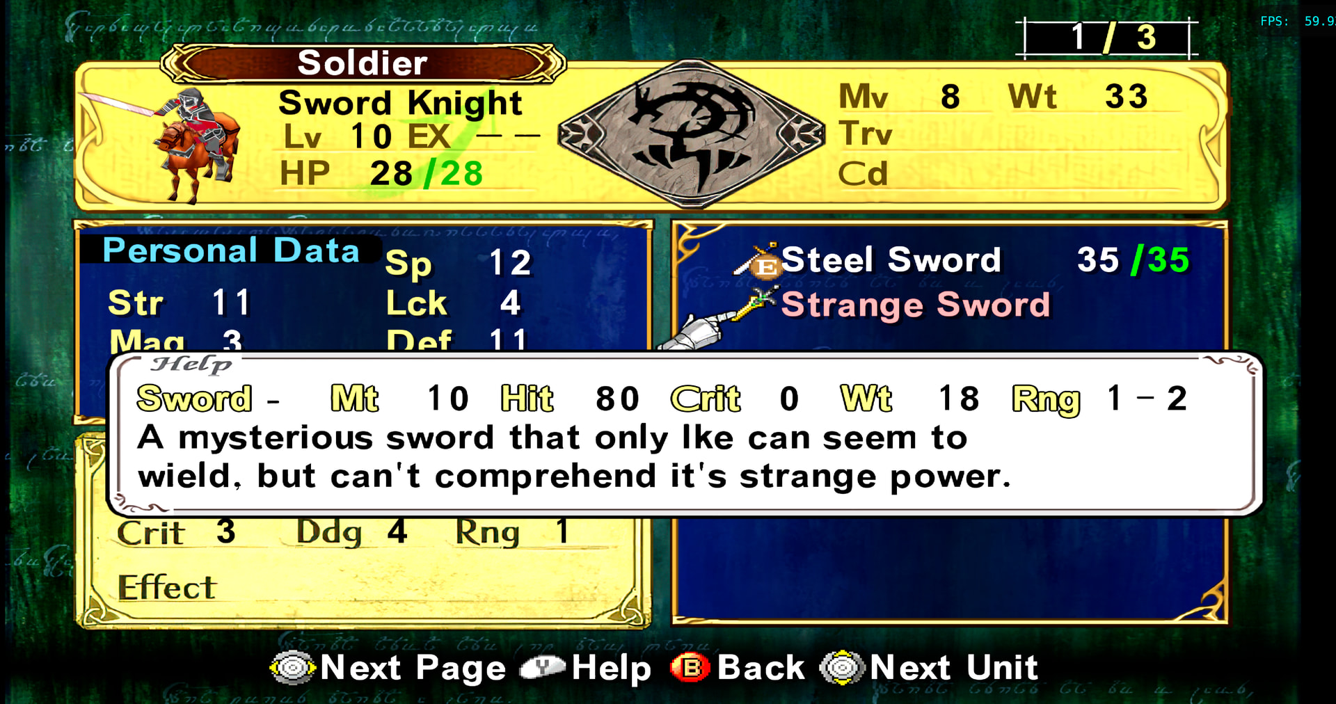 Maybe that could work with Urvan since it just kind of disappears from FE9 after Greil’s death? (Though I don’t know how to edit boss dialogue as of right now). Ragnell is a little harder since chapter 8 is the only logical time since Ike takes the sword around and then brings it back up later in the story. I could give it to the boss of chapter 8, just would be not as guaranteed for the player compared to one of the peons that charge at you in the defend chapter. I’ll sit and think about that though