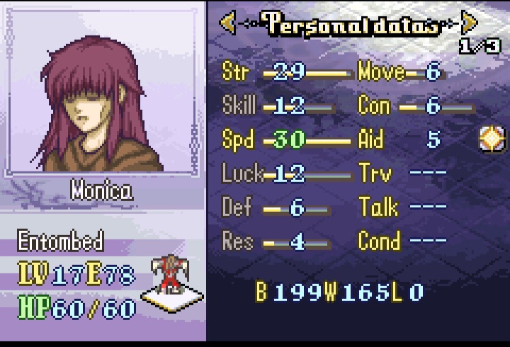 “Oh cool monica yeah ill use her surely she wont die every 2 seconds due to the fact she has no defensive growths and doesnt have the highest skill so she’ll end up missing a lot”