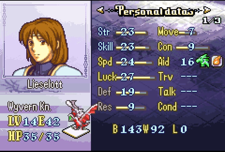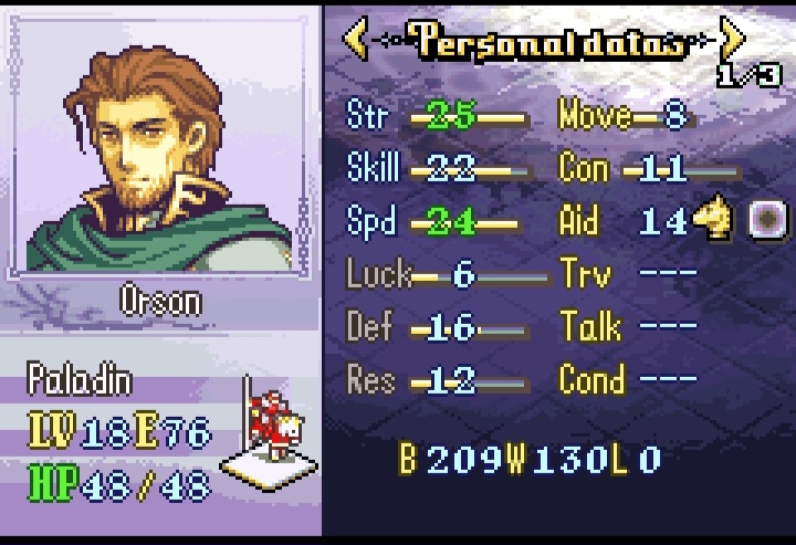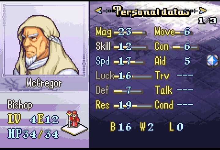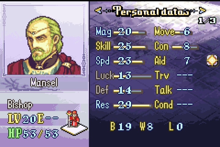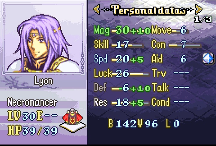 Ah yes lyon. Probably one of the best units in the hack due to his staff utility and while his combat can be a little lacking due to his low defense he still hits very hard-